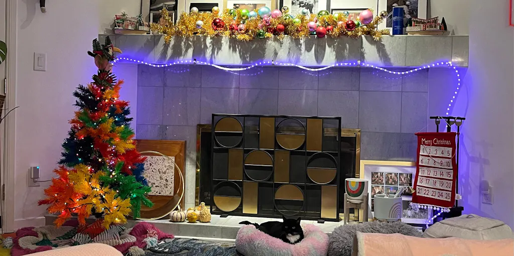 - Flame Resistant Tinsel Brush - safe to display above your mantle and fireplace. Safe for use with Christmas String Lights, C7, C9 Candelabra Bulbs, and Incandescent Lighting