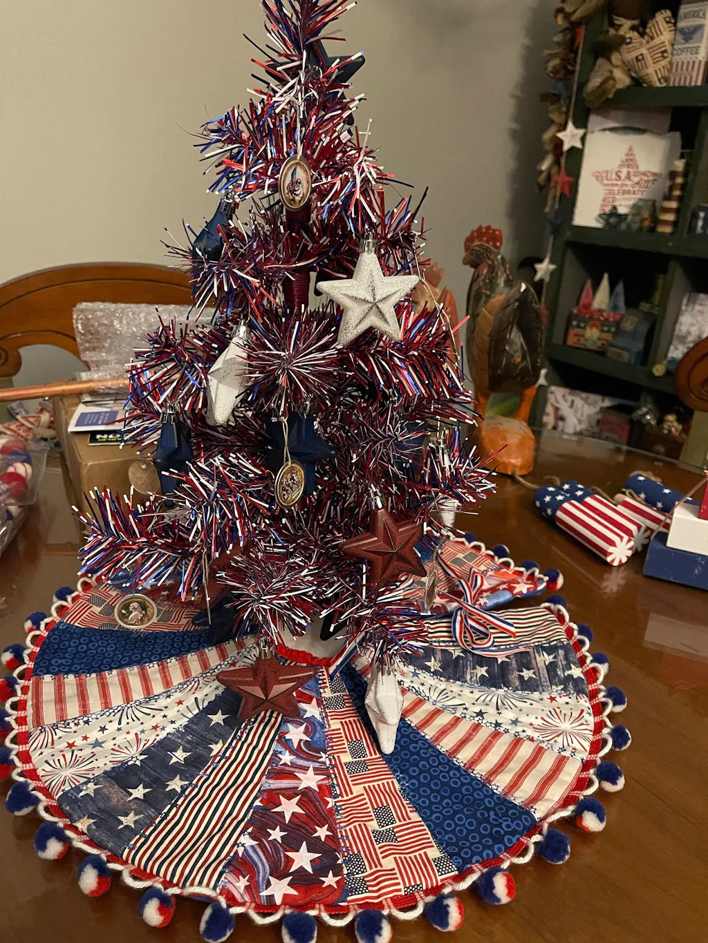 Red, White, and Blue Firework Tinsel Christmas Trees made by hand in the USA